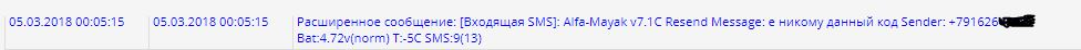 P.S. Может быть такое поведение наблюдается когда первым номером указан номер АвтоФон'а? То есть сервер при пересылке сообщения убирает часть полученного сообщения? Как маяк выйдет на связь попробую изменить 1й номер на свой...