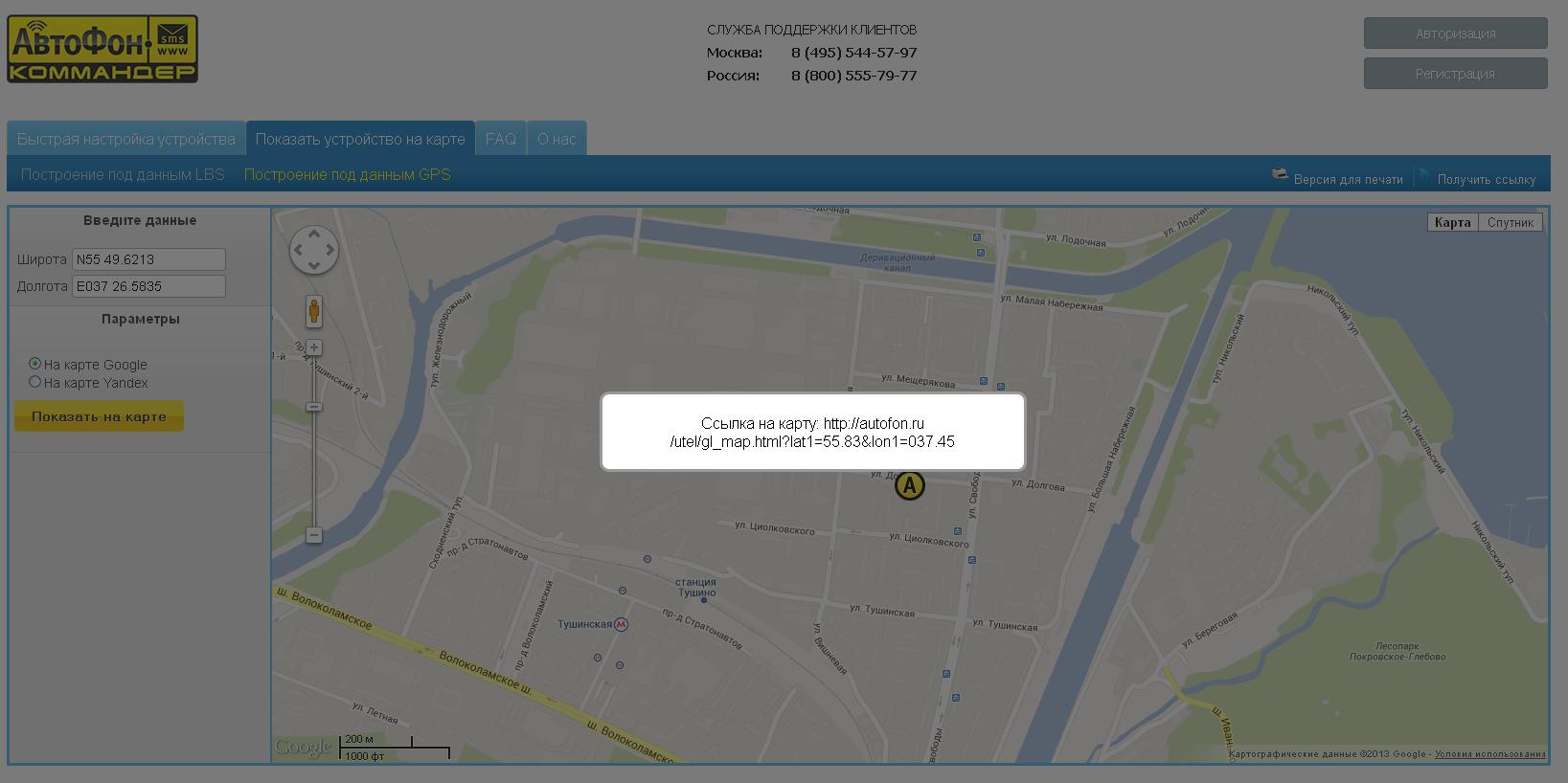 Гугл показывает все правильно. В чем же проблема? Оказывается КСА округляет координаты до 2 знаков после запятой, а это очень маленькая точность. Это легко заметить если нажать на "Получить ссылку".
